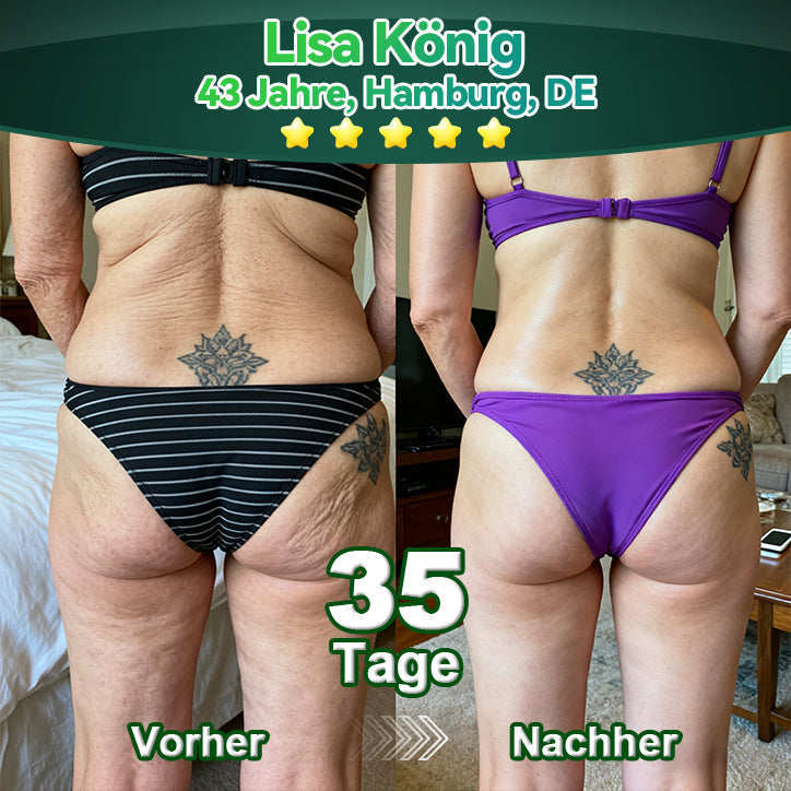 Ich trinke es zweimal am Tag – einfach in Wasser gemischt – und jedes Mal spüre ich diese sanfte Wärme in meinem ganzen Körper. Ich mache keine Witze, ich bemerke fast jeden zweiten Tag Veränderungen! Ich habe am 25. August angefangen, mache es weiterhin zweimal täglich, plus ein bisschen Sonnencreme – das ist buchstäblich alles. Es ist so einfach und wirkt so schnell! Meine dunklen Flecken, Rosazea, Falten… selbst meine Haare sehen jetzt so viel besser aus. Das ist ehrlich gesagt ein Ganzkörper-Booster, und ich glaube nicht, dass ich einen Tag mehr ohne es auskommen kann. Ich fühle mich absolut großartig, und ich empfehle es zu 100%! --- Andrea Weber